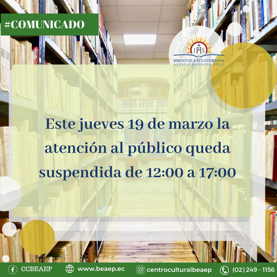 Para el Centro Cultural Biblioteca Ecuatoriana Aurelio Espinosa Pólit, el inicio del año nos trajo un tiempo de nuevos y sustanciales cambios, procesos de reingeniería y reinvención, un espacio que nos ha permitido volver la mirada a nosotros mismos, para re-evaluarnos, re-conocernos y proyectarnos, manteniendo el espíritu de servicio, preservación, conservación, difusión y puesta en valor de los acervos patrimoniales que custodiamos.