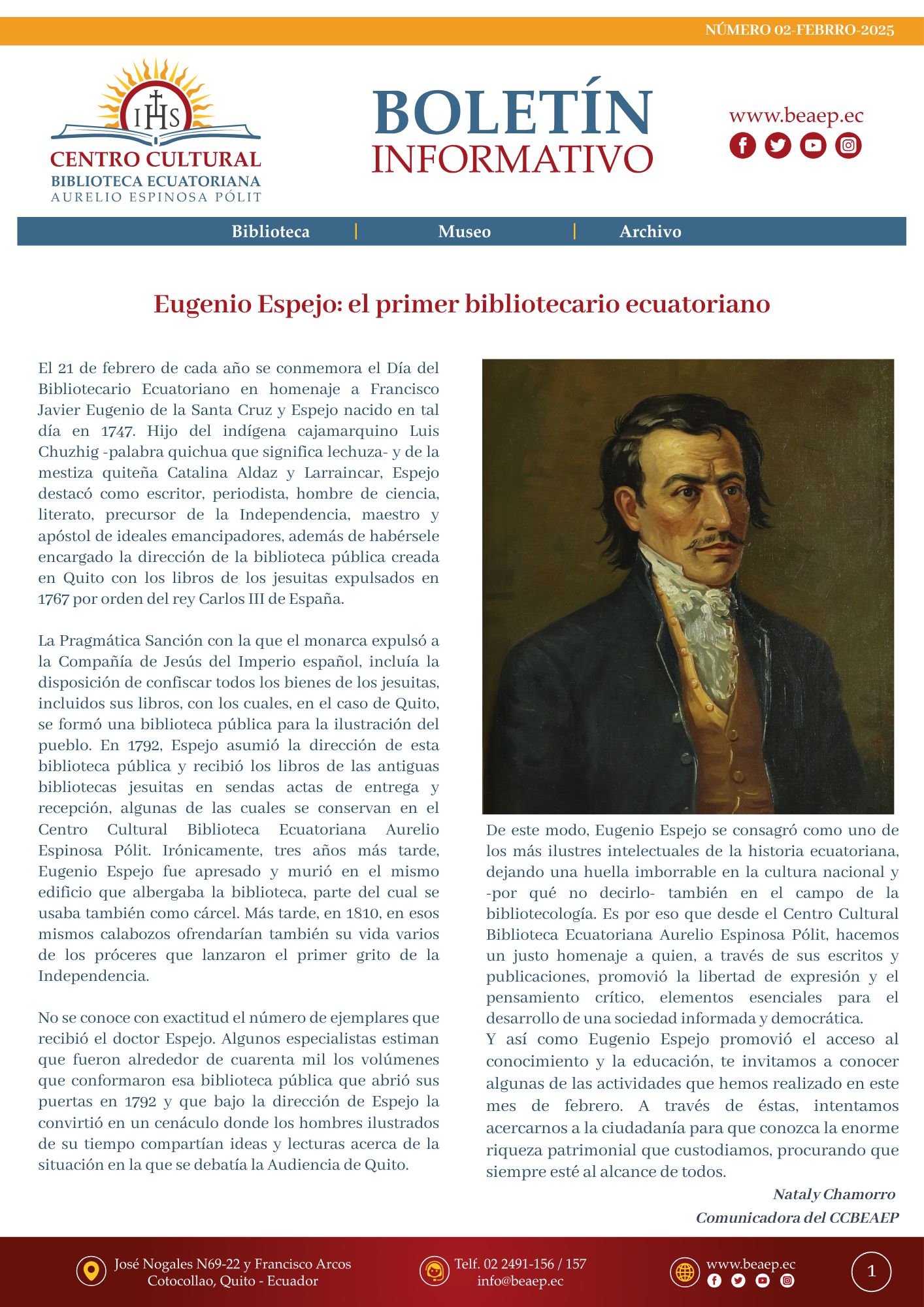 Boletín Febrero 2025: Eugenio Espejo: el primer bibliotecario ecuatoriano