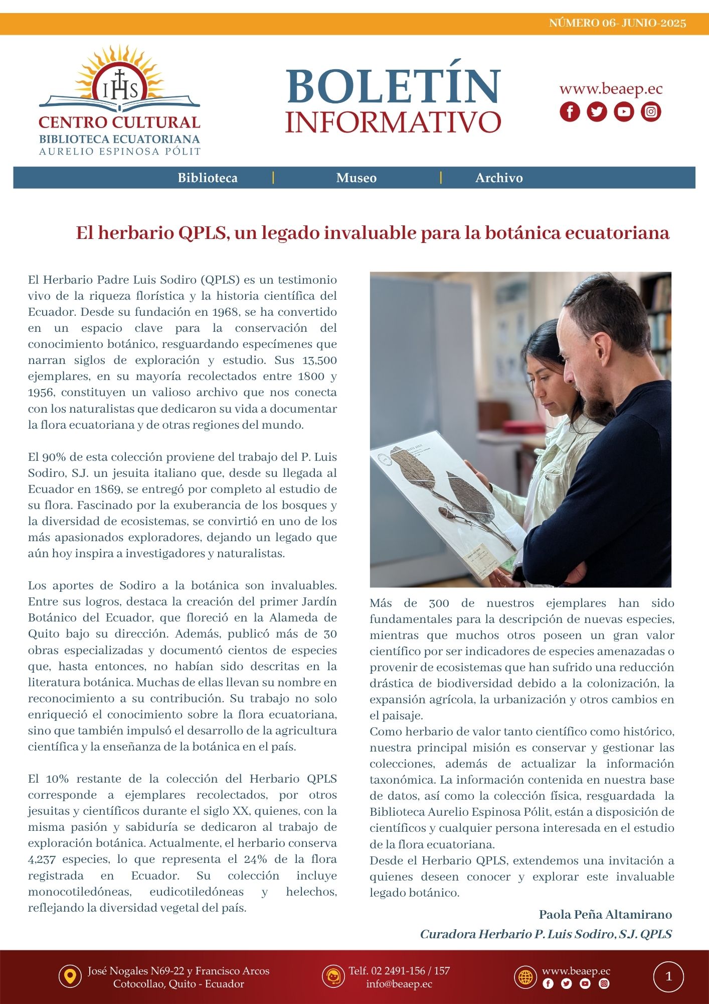 Boletín Junio 2025: El herbario QPLS, un legado invaluable para la botánica ecuatoriana